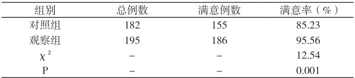 观察组的患者满意度显著高于对照组,差异具有统计学意义( P<0.001 )。详见表2。
