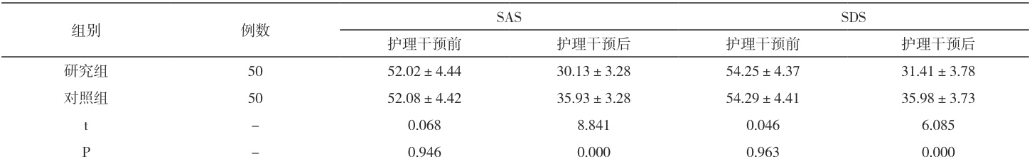 (1)负面心理评分:使用焦虑自评量表(SAS)、抑郁自评量表(SDS)评测患者焦虑、抑郁心理。(2)生活质量:发放明尼苏达 - 房颤患者生活质量问卷,选择情绪领域、躯体领域、其他领域评估,负向算分。以上均分别于护理前及护理2 周后评估。