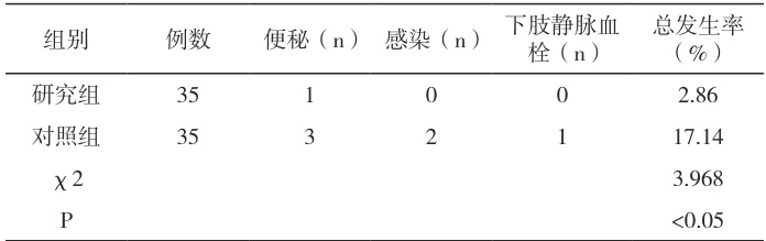 对比术后并发症总体发生率,研究组明显较对照组低( P<0.05 )。见表2。