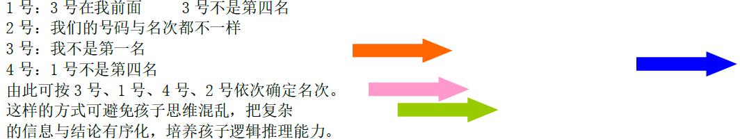 图表图示多用于逻辑推理,采用先排除,后依序确定的方式。案例: