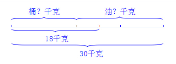 桶油连桶重30 千克,卖掉一半油后,再卖掉剩下油的一半,连桶重18 千克,求桶和油各重多少千克?