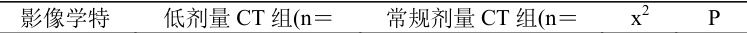 低剂量CT 对肺结核典型征象的显示率与常规剂量CT 相当( ⋅P>0.05 )具体数据比较见表2: