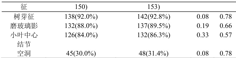 2.2 两组肺结核特征性表现显示情况比较