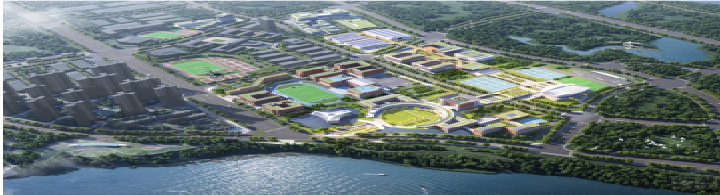 产教融合作为邵阳通航职业技术学院核心发展定位,决定校园布局要高度契合“理实一体化”教学模式需求。学校包含飞行、维修、智能制造、艺术、数智商贸等多个院系,实践教学时间比例普遍达 40%至70%,对实训空间独立性与便捷性要求突出[2]。同时教学区、实训区和生活区需要紧密联系,形成资源共享且功能协同的复合空间,布局设计要兼顾学科交叉、资源整合与高效流线,构建便捷开放且功能复合的校园环境,全面服务技术技能人才培养需求。