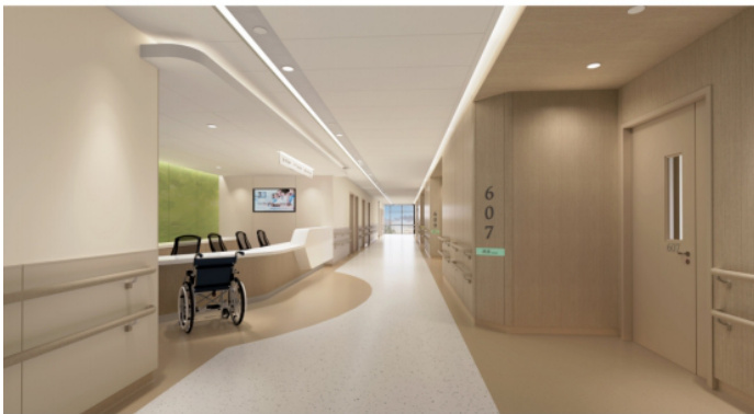 深圳市民政康复中心A院区在室内设计时注重把人性化细节进行系统落实,以此体现出对康复人群、老年住户以及医务人员的全方位关怀,整体空间是以自然且柔和的暖色系当作基调,同时结合绿植布置以及充足自然采光,从而弱化医疗空间所具有的冰冷感,营造出温馨又安全的康复环境,各主要流线采用的是宽敞通道设计,双层扶手和平缓坡道保障轮椅、病床能够通行便捷,地面材料都进行了全面防滑处理,以此提升人员行走过程中的安全性,护理单元、候诊区、卫生间等重点区域优化了空间尺度,兼顾了功能和使用过程中的舒适性,色彩系统采用背景色、主体色、点缀色进行分层搭配,结合色彩疗法理念来激发正向情绪反应,标识导视系统清晰又醒目,方便患者及其家属识别具体的通行路径,整体室内空间通过对各种细节进行优化,有效提升康复体验以及空间品质,助力实现医患安全、舒适、高效的使用环境。(如图)