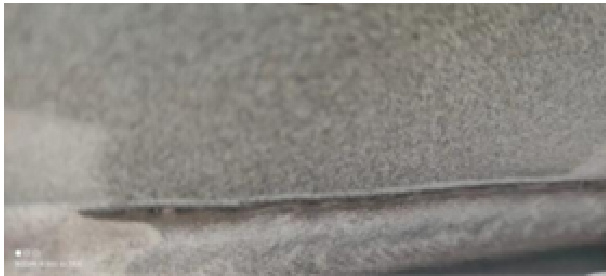 施焊过程中控制电流 305A,电压31v,采用正小月牙注意铁水成型情况依靠电弧推力和焊枪角度,使其避免下盖板焊缝焊角不够,导致内板焊缝边缘夹角的形成,从而有效减少了焊缝成型不良,产生缺陷的频率。