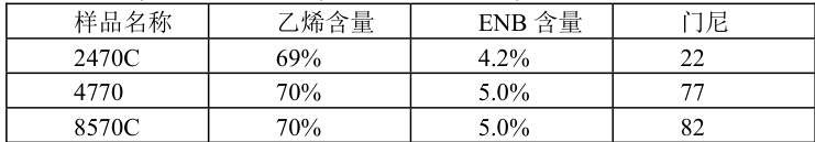 结合三元乙丙的组成和表 1 中数据可以看出,虽然三者的乙烯含量均在 70% 左右,但是其总熔融焓值是不一样的。