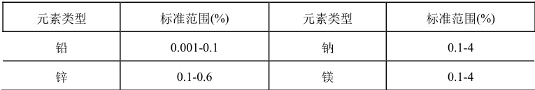 铜元素的标准含量范围在 0.1% 至 2% 之间,当铜矿含量达到 3% 以上时,多以化合物形式存在于地下;锌元素的标准含量范围为 0.1% 至 0.6% ,锌矿含量可达 2% 以上。