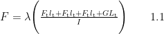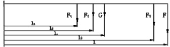 后机架的受力如图 2 所示,其中 F1 、 F2 、 F3 分别代表发电机、变流器和变压器产生的竖直向下的集中力,力的作用点为部件的重心位置。G 为后机架自身所受的重力。F 为上述载荷折算于后机架尾部的集中力。l,l1,l2,l3 和 1g 分别为等效的集中力、发电机、变流器、变压器、后机架的自重的载荷到后机架与主机架连接面的距离。