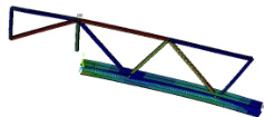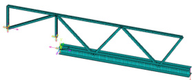 将桁架式内部框架的腹杆、弦杆、斜杆等单纯受拉压载荷的结构简化成为杆单元。对于后机架,因其承受的弯矩较大,且产生了弯曲变形,因此采用梁单元对其进行简化,并将其与杆单元在节点处进行耦合,截面分别为“工”字形和正方形。