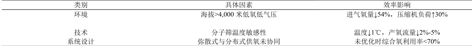 影响铁路客车高海拔制氧系统效率的因素主要包括环境制约、技术瓶颈及系统设计三个方面,具体如下: