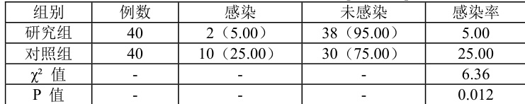 研究组术后感染率为 5.00% ,明显低于对照组的 25.00% , P<0.05 ,数据见表3。