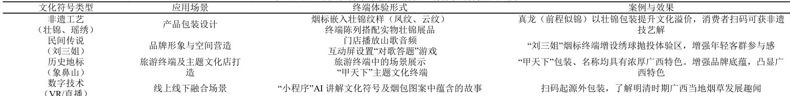 表 1 广西地域文化符号与卷烟品牌及终端场景的价值融合