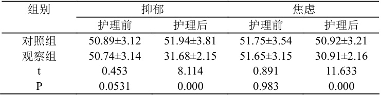 对照组患者负面情绪评分同观察组比较高P<0.05,具有差异性,见表 1。