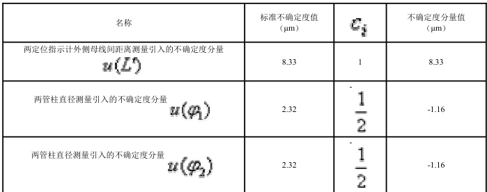 9、两管柱直径测量引入的不确定度分量
