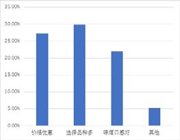 通过以上调查数据调研发现,选择茶饮系类的女性消费者较男性消费者多;多数消费者会选择逛街、聚会休闲娱乐的时候购进茶饮,在娱乐场所和商场的茶饮的市场发展潜力良好;约 50% 左右的消费者会选择一个月偶尔喝几次奶茶;在对比奶茶中养生茶饮具有选择品种多、价格优惠、味道口感好等优势;在调查者中半数以上消费者选择的奶茶价位在8-18 元,价位选择调查更有利的消费导向。