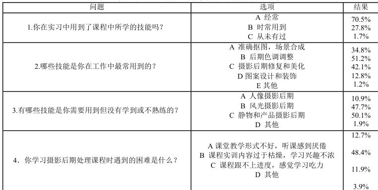 表二 往届学生问卷中关于课程实用性的部分问题和结果