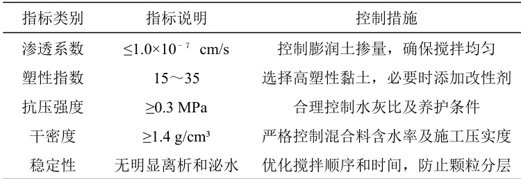 表1 塑性防渗墙常用性能指标及对应控制措施