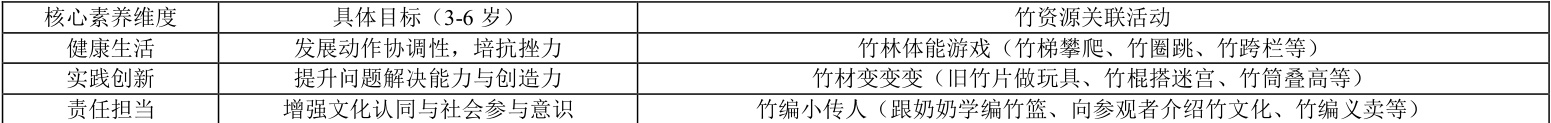 表 1 永兴幼儿园“竹资源”课程目标与核心素养对应表