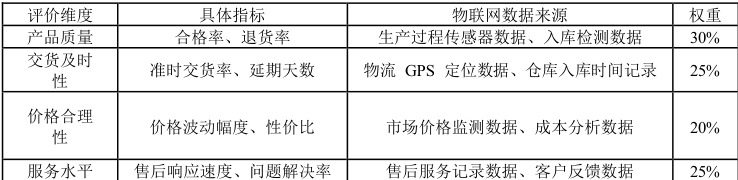 为了更科学地评价供应商,建立基于物联网的供应商动态评价体系,如表 1 所示:
