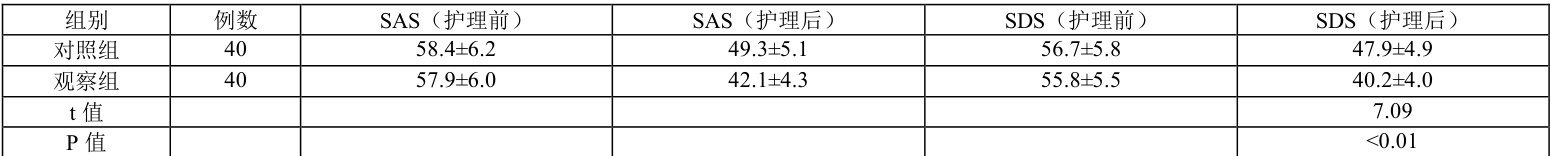 表 2 两组护理前后心理状态评分比较(分,