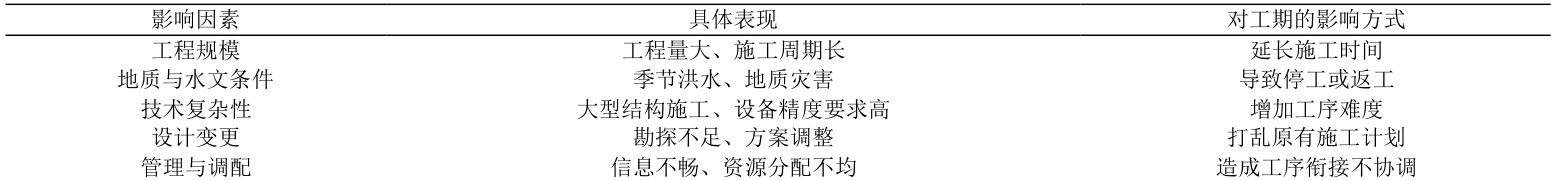 表 1 表明,工期影响因素具有系统性和复杂性,需要在规划与实施阶段进行全面考量。