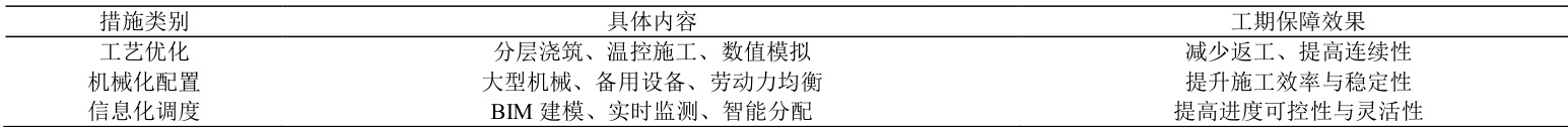 表 3 直观反映了技术与资源措施在工期保障中的重要作用,为水电站建设提供实践指导。