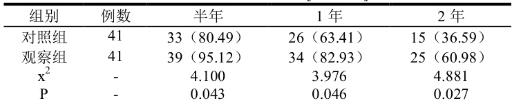 表 1 两组生存率对比[n( (%) )]