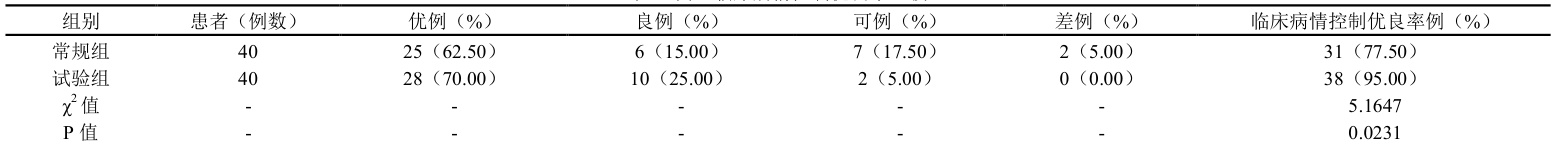 表 4 两组临床病情控制优良率比较