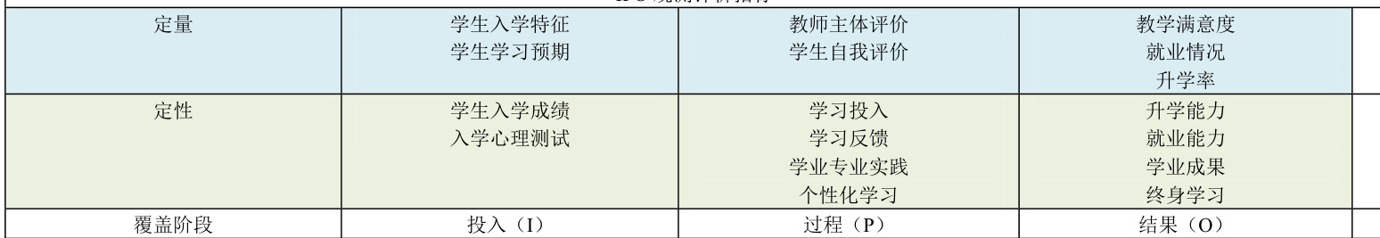 数智技术赋能下,探索确定可追溯的定性和定量观测评价指标是实现全过程育人质量评价的关键。大数据和人工智能时代,大学生核心素养体现了自身独特性和时代性,学生学习的重点不再是习得为将来从事某个职业所需要的特有知识、技能与方法,而是形成正确的价值观、强大的创新思维与创新能力,掌握自主学习的能力等。基于智能时代高职学生特点、学生核心素养、专业发展需求和职业生涯规划以及终身学习需求,基于科学规范、系统精准的评价原则和过程 + 结果 + 增值的综合评价理念,依托大数据和人工智能技术辅助,聚焦思政教育全过程覆盖、个人成长发展全过程追踪,探索确定IPO精确的定性和定量相辅相成的观测评价指标,实现追踪记录全过程育人质量评价。