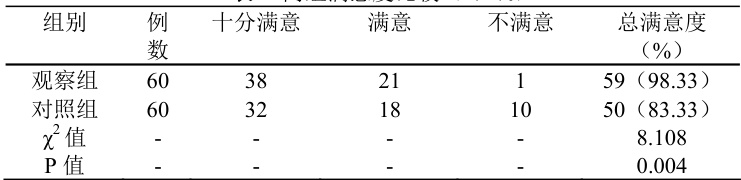与对照组相比较,观察组总满意度更高( ⋅P<0.05 ),见表1 所示。