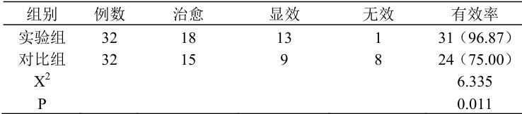 实验组治疗效果优于对比组, P<0.05 ,如表2。
