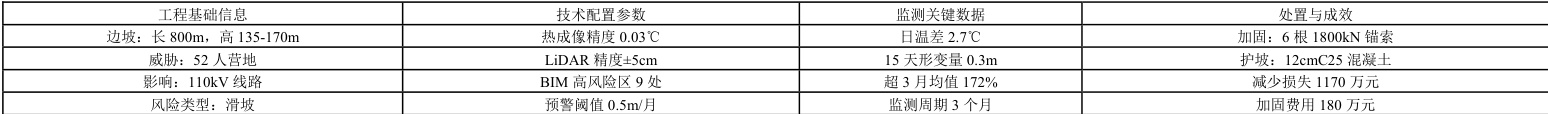 表 1:某库区边坡无人机+BIM 技术风险监测与处置成果