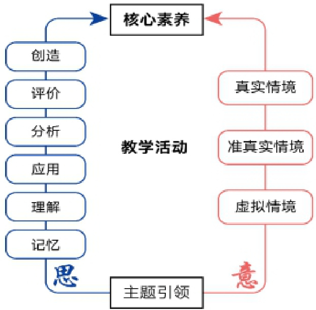 其设计框架如下图所示,教学活动设计应同时贯穿“思维线”与“意义线”,最终指向学生核心素养的发展。