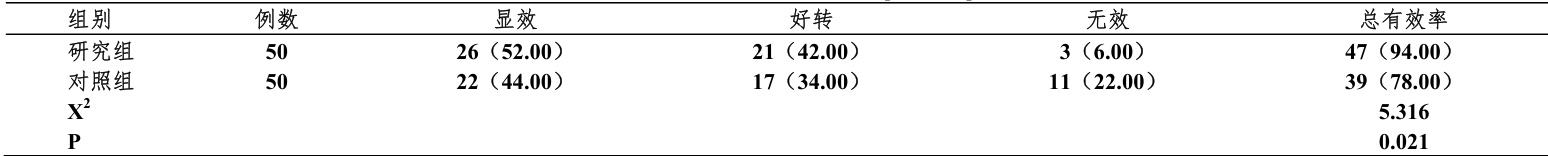 研究组治疗有效率高于对照组( iP<0.05 ),经统计有显著差异,见表1。