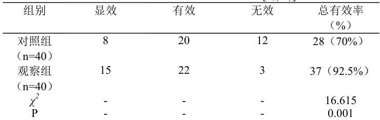 注:显效 + 有效例数/组内总例数 ×100%= 总有效率。