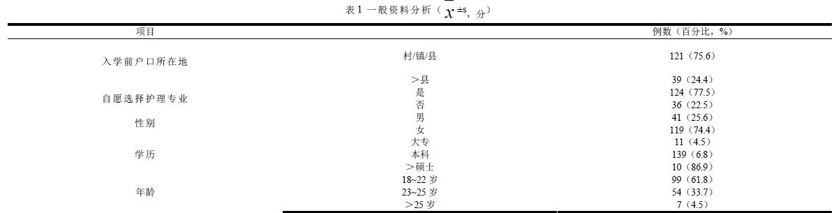 自拟一般资料调查问卷表,内容涉及入学前户口所在地、自愿选择护理专业、性别、学历、年龄等。