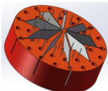 切削用的刀具选择使用小型美工刀的锌合金刀片,它既保证了质量上的轻便、外形上的小巧,还保证了足够的锋利度去切削橘白[3]。承载刀具采用圆柱形蜂窝结构——采用 3D 打印材料制作。为保证提高橘白的去除率,还需要添加一些银针作为副刀具使用。其作用是将橘白紧贴橘红的结构破坏,使美工刀刀具更容易清除橘白。