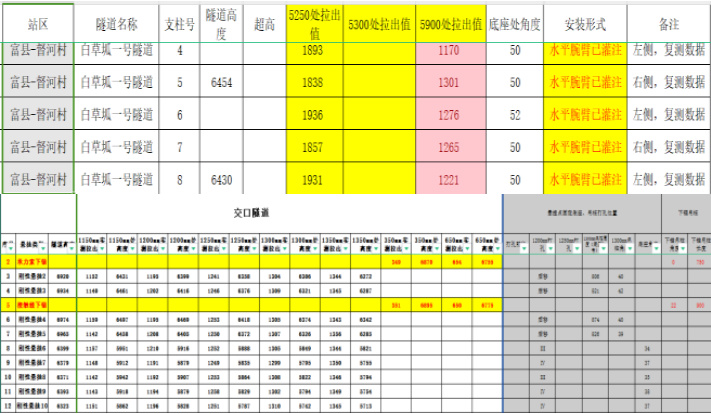 (1)提取接触网对应公里标处隧道净空,对应拉出值处隧道净空及该处隧道断面变化率等,为接触网吊柱肩架选型等提供技术支持等。