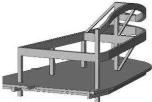 根据设计图纸的特点进行空间建模,根据模型(图一)进行受力分析,并将组合架构合理分割成若干施工单元(图二为其中一个单元)。这些施工单元具有唯一性,包含各构件自身的模板工程和钢筋。先在地面组装并验收后吊装至高处安装,该组合体的结构可满足单元的整体吊装刚度要求。