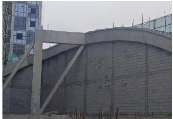待空间曲体梁柱组合架构混凝土达到保养时间后,按规定进行淋水保养。待混凝土达到设计的 100%强度后,拆除模板及其支撑体系。采用塔吊或吊车将拆除的所有材料吊运清除到地面。施工效果如图四。