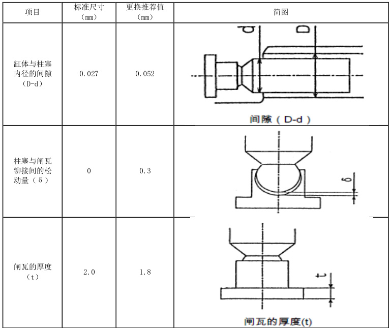 (2)分别按照表1 中标准进行检测测表1 数据表明各配合副均在更换值范围以