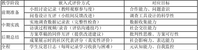 如在研究课题《社区垃圾分类现状调查与改进方案设计》中,笔者设计了如下嵌入式评价: