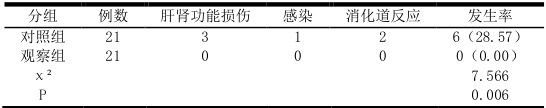 组间不良反应发生率比较,观察组低于对照组(P<0.05)。见表2。