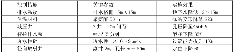 矿区边坡的水环境控制,其关键是构建多级立体的防排水管网。一座大型铁矿石矿山的实际应用证明,通过15 米*15 米的横向排水格栅(孔径 110 毫米,孔深 30 米),再加上坡顶部的排水沟(截面大小 1.5 米 ×1.2 米)以及坡脚的集水井(直径 3 米、深度 8 米),可以将边坡内的地下水降低 12-15m,稳定性系数提高 0.3-0.4。在此基础上,要将热传导系数 ⩾0.025V/ (m. K)的聚氨酯保温材料(50mm/(m. K)与电热伴热 (30W/m) )相耦合,实现管道在-30° C 低温环境下的使用。在寒冷的山区,采用该项工艺后,其冻结变形降低了 82%[5] 。
