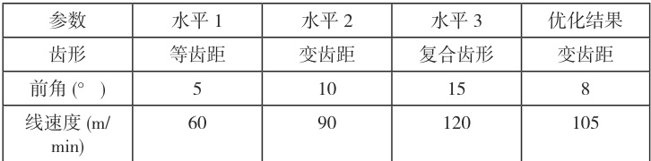 1) 最优锯切组合:YG8X 硬质合金锯片( 10∘ 前角, 90m/min )可使毛刺高度 ⩽0.12t