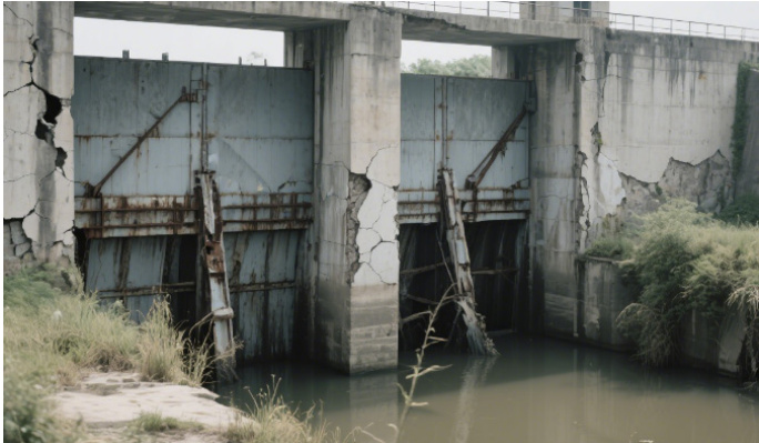 在长期服役期间水工建筑物会持续受到复杂水文条件多重作用,这些作用包含水力冲刷、泥沙磨损以及环境温湿度波动等因素,这使得建筑材料性能出现渐进式劣化情况。具体体现为混凝土结构在碳化作用与氯离子 共同影响下产生微观缺陷,降低了其力学性能与耐久性,钢筋锈蚀产物产生体积膨胀效应,促使保护层开裂并形成渗水路径(图1) 。金属构件在潮湿环境中容易产生电偶腐蚀现象造成几何尺寸变化,严重影响设备运行可靠性,值得关注的 小信藏 引发的累积损伤, 能造 成关键部位应力重分布进而削弱结构整体稳定性,若不采取有效维护措施上述损伤机制会产生协同效应,最终可能导致挡水功能丧失、过流能力衰减乃至突发性结构破坏,对工程安全运行构成重大威胁 [1]。