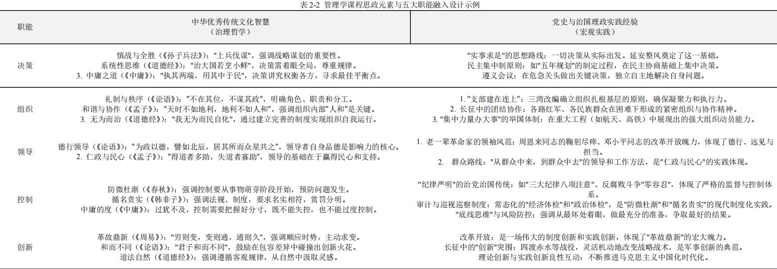 管理学课程思政的设计整体围绕以下教学目标展开: