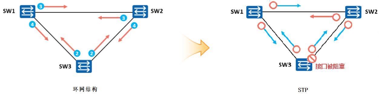 这些弊端,团队对网络架构进行了优化,采用了“核心—汇聚—接入”的三层分布式结构,显著提升了网络的层次性和可扩展性。在接入层引入环网拓扑,增强了网络的冗余性与可靠性。虽然环网结构存在引发广播风暴、耗尽网络资源的潜在风险,但通过部署生成树协议(STP)及其优化版本快速生成树协议(RSTP),实现了链路的自动检测与故障自愈,有效保障了网络稳定运行。该优化方案尤其适用于设备密集的工业车间环境,能够在局部故障发生时将影响范围控制在最小,提升了整体网络的容错能力与可维护性。