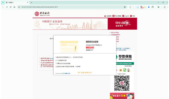 在Chrome 浏览器上安装诈骗网站检测模型插件,然后输入恶意网站的网址进行测试。测试结果如图2 所示。该模型能正确检测恶意网站,并弹出提示信息帮助用户快速识别。